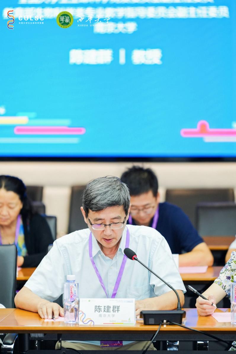 陈建群作赛事介绍,他表示此项赛事注重学生科学探究思维的训练和培养,对促进各高校提升生命科学类专业人才培养质量具有重要的意义。