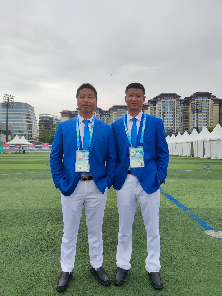 8月1日比赛正式打响,三位老师各司其职。侯金成和李贵春作为热身场地裁判员,积极与其他裁判员协同配合,组织来自世界各地的运动有序进行热身活动。热身场地是运动员开始比赛的“第一站”,裁判员与运动员、教练员接触最多,是向世界展示中国形象的重要窗口,裁判员要给各国教练员、运动员留下好的印象,确保运动员安全、为他们提供规范的比赛环境。