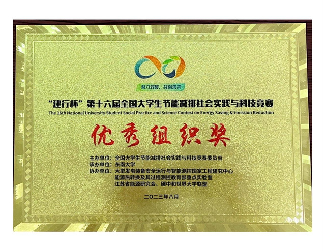 近日,“建行杯”第十六届全国大学生节能减排社会实践与科技竞赛决赛在东南大学落下帷幕。大赛以“节能减排,绿色能源”为主题,经过校级评选、专家评审等多个环节的激烈评选后,西华学子再创佳绩,荣获全国三等奖8项,获奖数创历史新高,能源与动力工程学院精心组织竞赛,表现突出,获优秀组织奖。