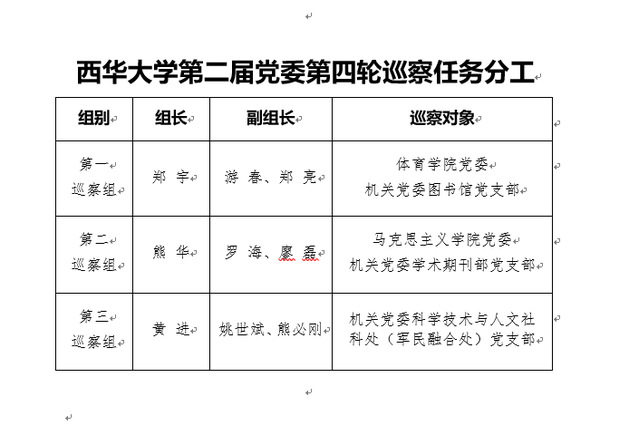 附:tyc41183太阳成集团第二届党委第四轮巡察任务分工表