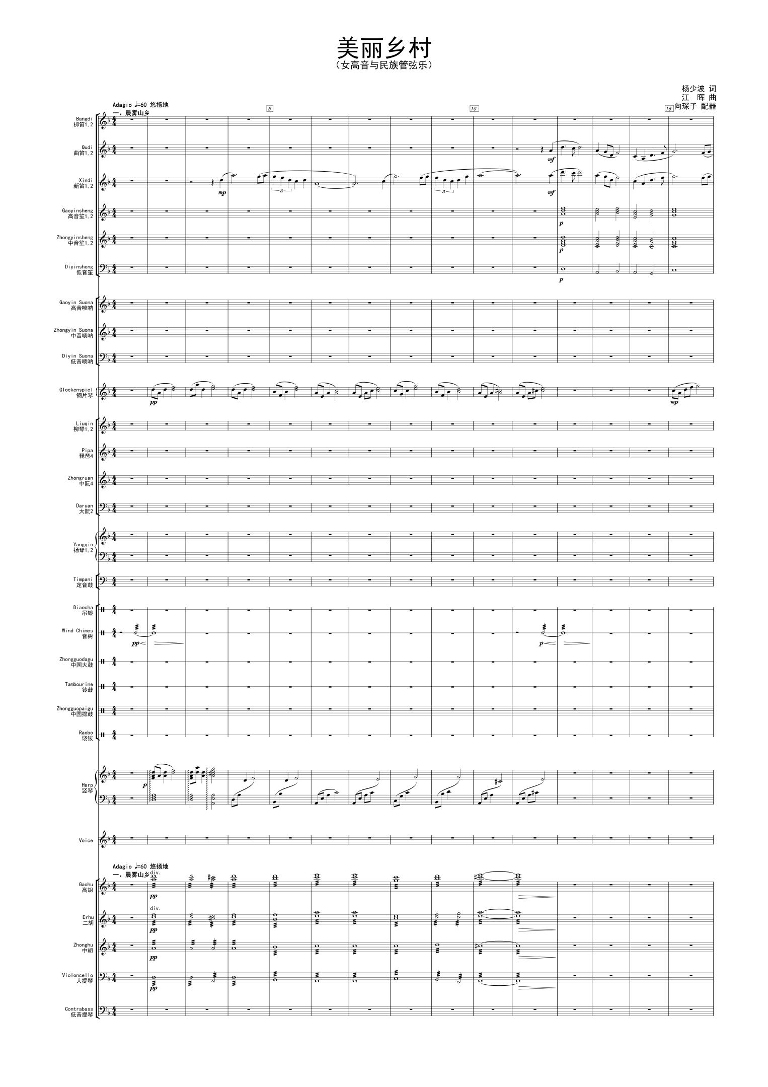 其中,压台曲目《美丽乡村》为人声与民族管弦乐队而作,全曲6分20秒,由杨少波作词,江晖作曲,向琛子配器,王馨演唱。“金黄的稻谷翻起波浪,丰收的喜悦堆满脸庞”。本作品以庆祝新中国成立70周年天安门阅兵式群众游行“乡村振兴”方阵演奏曲目《美丽乡村》为基础,糅合湖南民族民间音乐素材加以发展扩充。通过“晨雾山乡”“田野稻浪”“丰收景象”“小康展望”四个章节,由慢及快,层层递进,描写了近年来怀化人民在袁隆平精神的鼓舞下,奋进新时代,大力抓好精准扶贫和乡村振兴战略工作所取得的巨大成就,绘就的一幅幅美丽新农村乡村建设的风景画,生动地展现了怀化人民在党的号召下,勤劳耕耘、奋起创业的美丽场景,亲切自然地表达了乡亲们对党的无限感激之情和美丽家园的无限热爱。