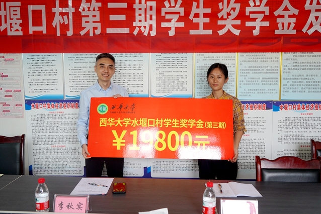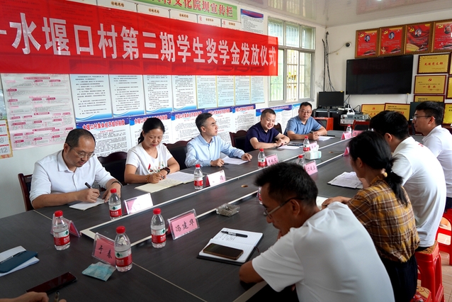 座谈会现场举行了2023年奖学金(第三期)颁发仪式。水堰口村党支部书记杨阳代表获奖学生接受了颁奖。今年,全村考上高中及以上学校的学生总共有17名,共计获得奖学金19800元。