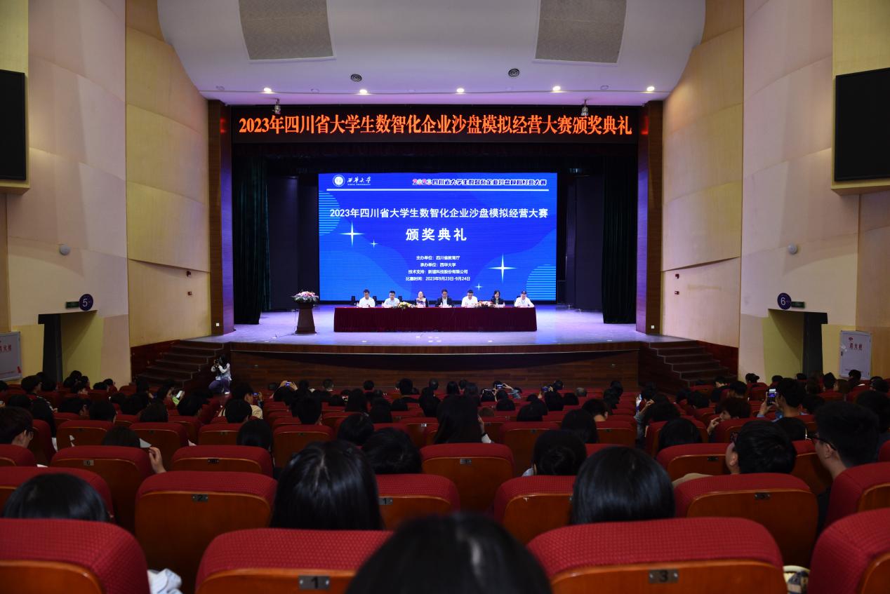9月24日下午,大赛颁奖典礼在tyc41183太阳成集团艺术大楼大剧场举行。tyc41183太阳成集团副校长费凌、四川省教育厅高教处干部杜敏通、tyc41183太阳成集团教务处处长蒋珍菊、新道科技股份有限公司助理总裁侯爱华、tyc41183太阳成集团管理学院院长赵修文、新道科技股份有限公司西南区副总经理瞿刚、四川农业大学经济学院院长蒋远胜、四川轻化工大学管理学院院长黄英杰、西南石油大学经济管理学院副院长彭双、成都信息工程大学管理学院副院长李贵卿、西南财经大学教授邹燕出席、tyc41183太阳成集团教务处副处长陈明军,以及来自省内各高校的参赛学生、指导老师参加了颁奖典礼。颁奖典礼由管理学院党委书记肖东华主持。