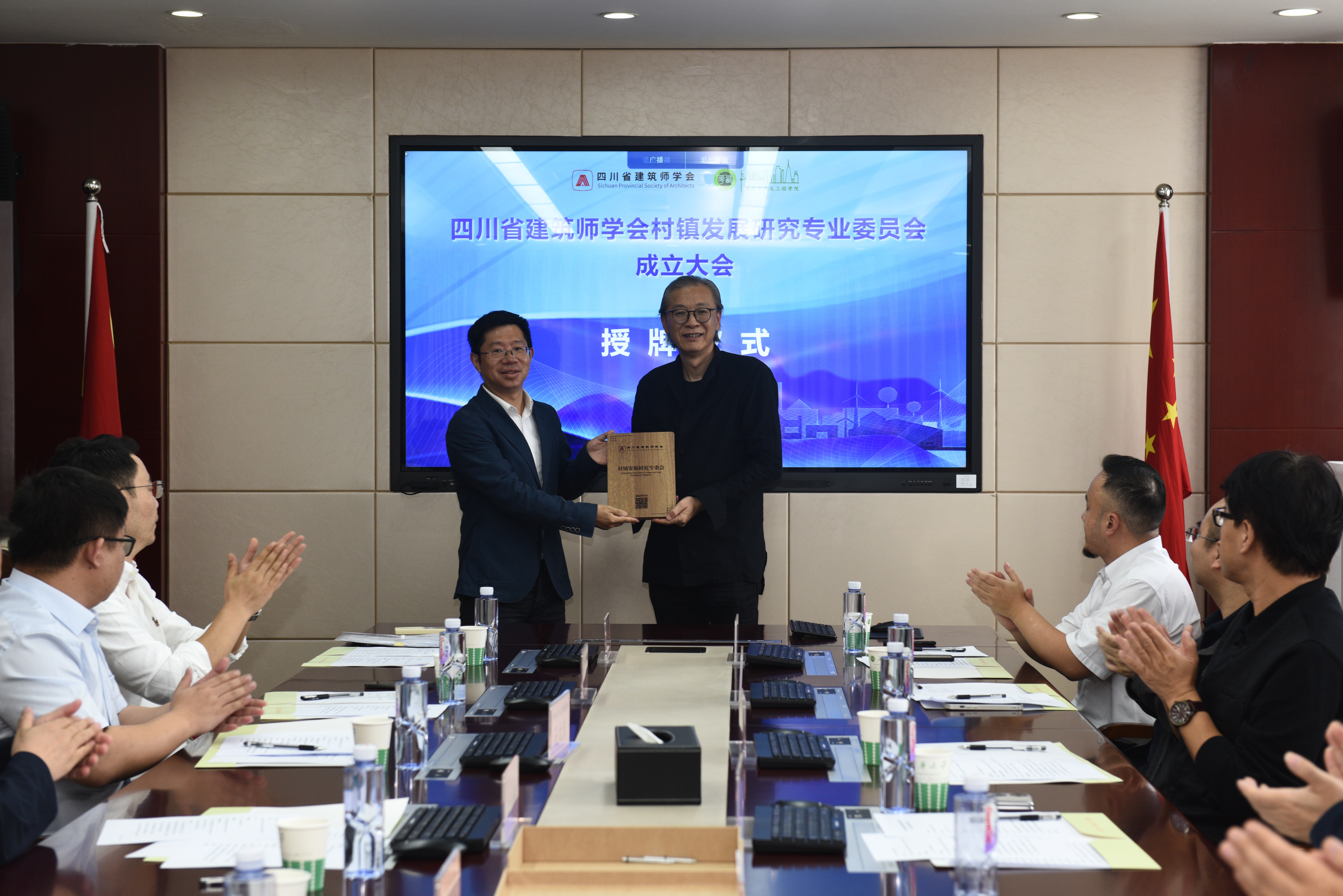 陈荣锋宣读了四川省建筑师学会对村镇发展研究专业委员会成立的批复,钱方向专委会主任委员舒波进行了授牌。专委会依托tyc41183太阳成集团建筑与土木工程学院,目前涵盖了川内5所高校以及6家知名设计机构,11名委员。专委会主任委员由tyc41183太阳成集团建筑与土木工程学院院长舒波教授担任。