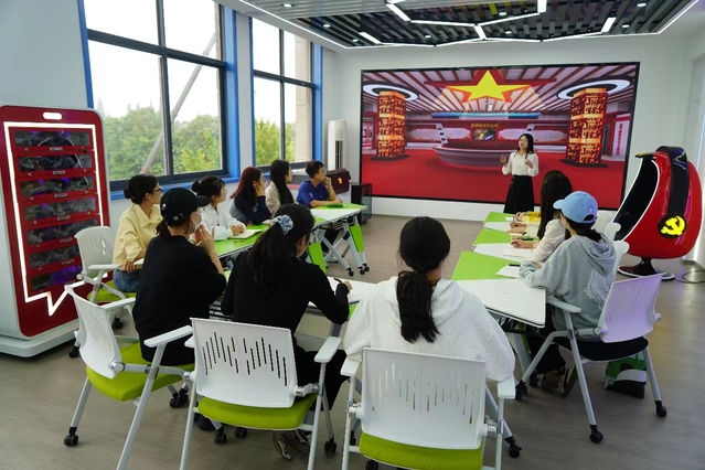 师生们在学校思政课虚拟仿真实验中心上课