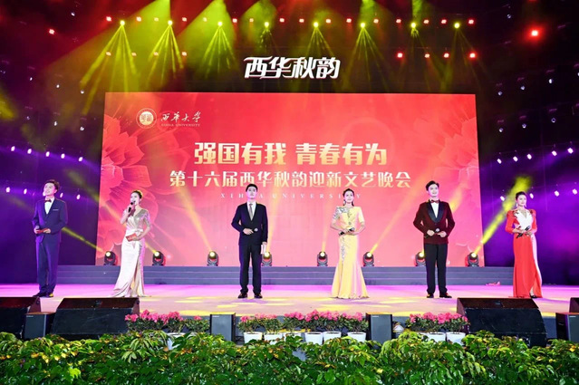 沱江之畔,观斗山下,奏响青春的鼓点,照亮青春的征程。10月14日晚,在一声声倒计时中,“强国有我 青春有为——第十六届西华秋韵迎新文艺晚会”正式拉开帷幕。本届西华秋韵分设成都和宜宾两个会场,两个会场同时演出,实时共享。精心打磨的节目在灯光下熠熠生辉,演员们热情洋溢的笑容感染着线上线下每一位观众。这个夜晚,歌声、掌声、欢呼声汇聚成欢乐的海洋,西华校园热闹非凡。