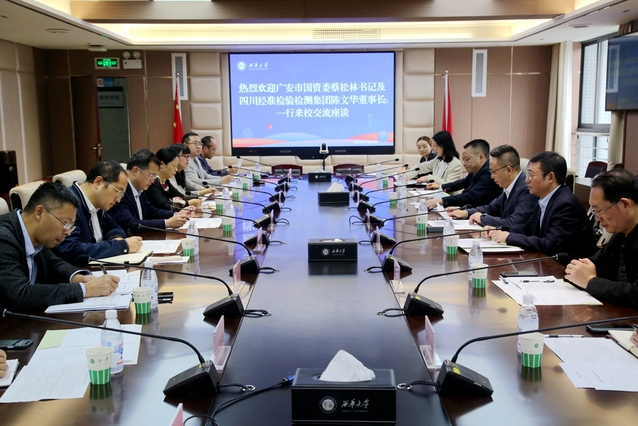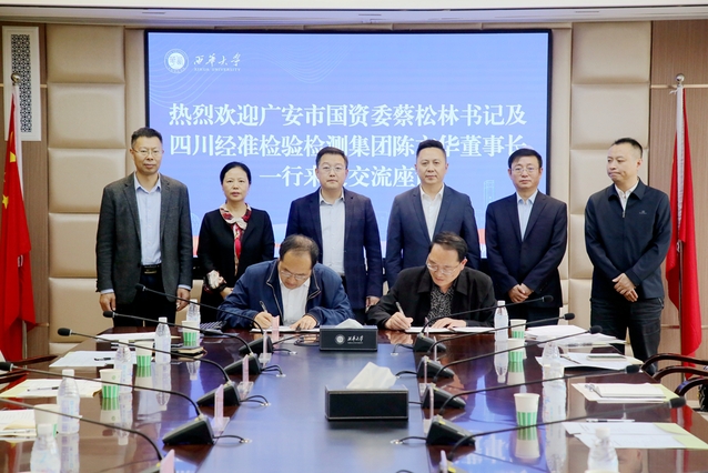 10月26日下午,广安市政府国有资产监督管理委员会党委书记、主任蔡松林带队,四川经准检验检测集团股份有限公司党委书记、董事长陈文华等一行来校交流座谈并签订了框架合作协议。