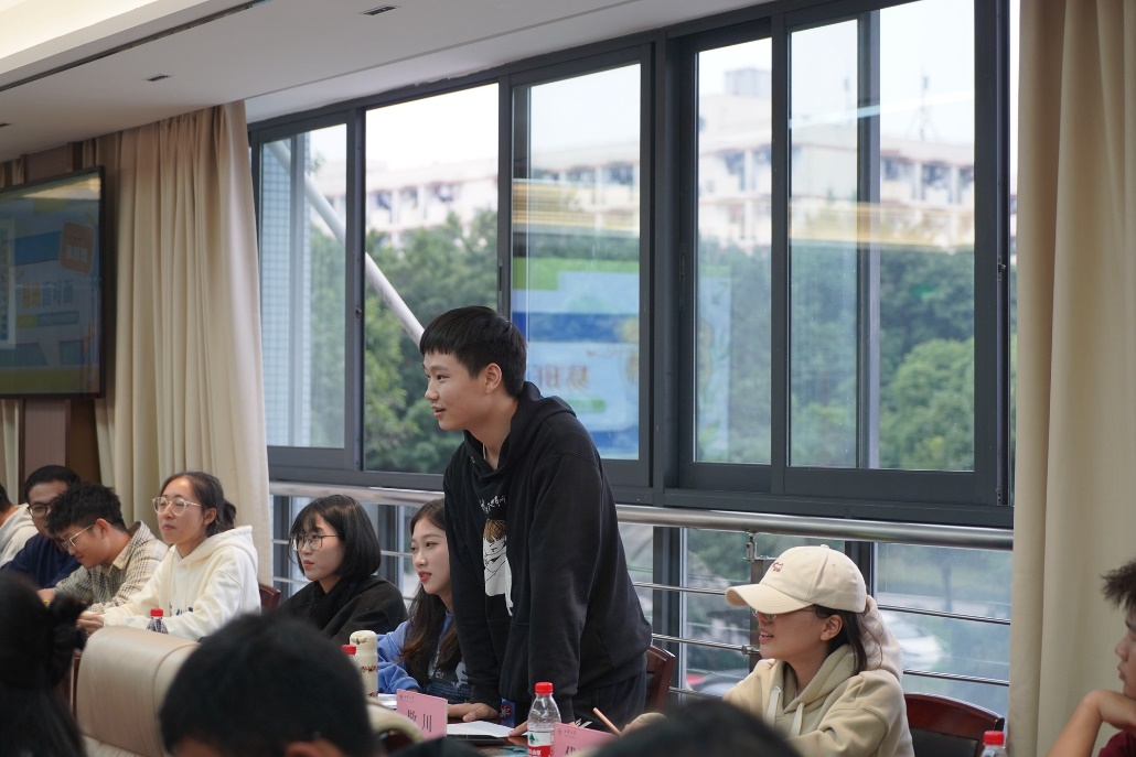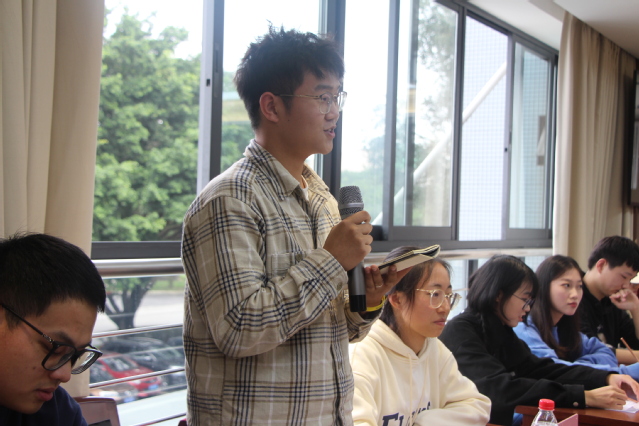 法学专业的宋国威同学对于课程设置提出了自己的看法,他建议加强实践性课程建设,学科之间交叉融合,让知识与能力做好衔接,并提出了自己对于学分比例的看法,认为在当今大环境下,“37比例”可以让学生更加注重平时的成绩,关注每时每刻的进步。对于课程建设,刘书记回应道,“这是一个非常好的建议,但是跨专业、跨学科学习应该在把本专业学好的基础上进行,首先要把本专业知识学透,不能只学皮毛,要进行长期深入的研究。”针对学分比例的问题,教务处也现场给出了回应。