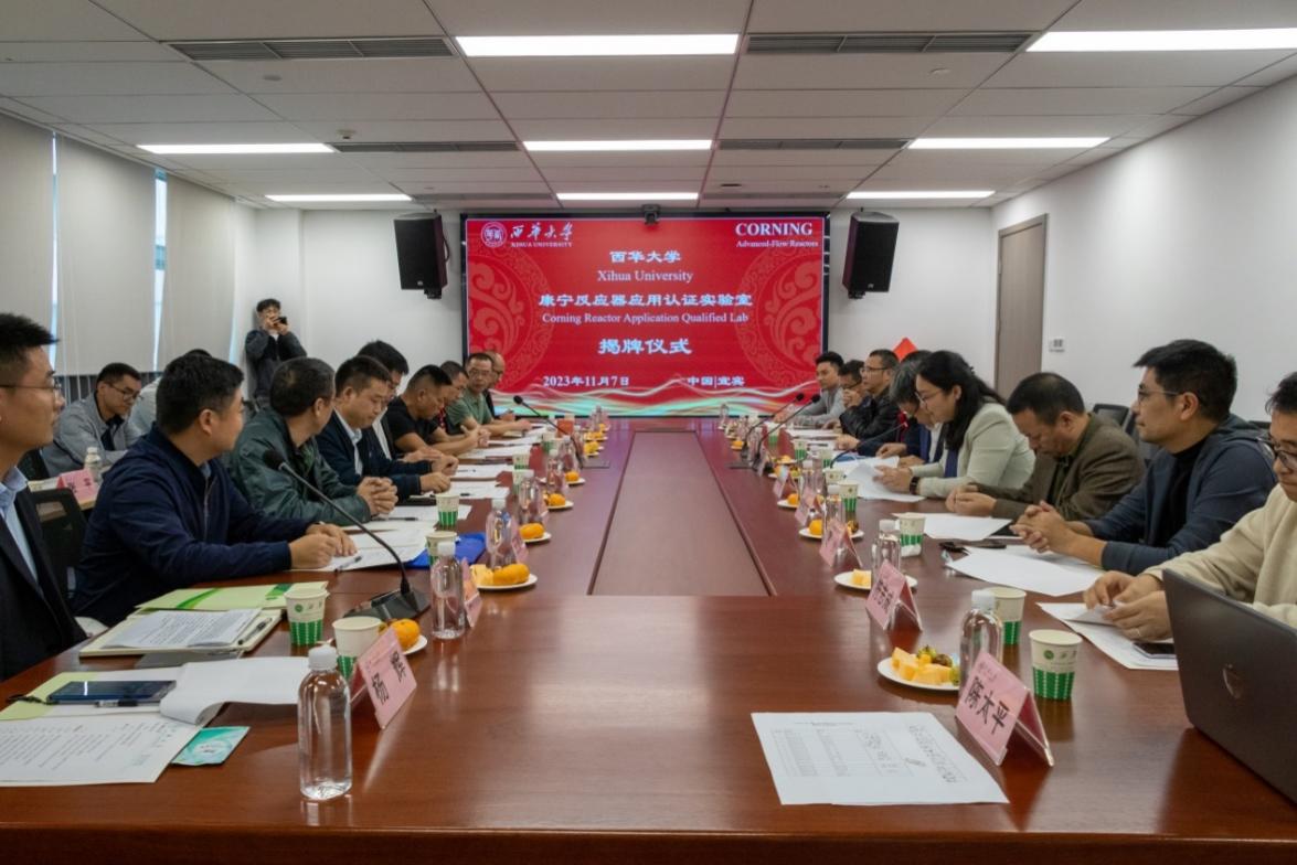 11月7日,tyc41183太阳成集团-康宁反应器应用认证实验室(AQL)签约揭牌仪式在宜宾校区行政楼502会议室举行。副校长许州、康宁反应器技术有限公司董事长姜毅、理学院院长王周玉、四川鸿鹏新材料有限公司生产副总监石飞出席仪式并致辞。宜宾市科技局、宜宾市委人才和大学城工作局、成都登隆生物医药有限公司、成都新恒创药业有限公司、四川北方红光特种化工有限公司、成都启煋原生物医药科技有限公司、四川鸿鹏新材料有限公司、四川久凌制药科技有限公司、宜宾tyc41183太阳成集团研究院、宜宾校区管委会党工委、理学院等相关领导和老师参加此次揭牌仪式。会议由科学技术与人文社科处处长牛宪华主持。