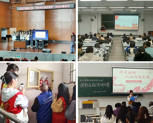 据悉,为切实增强广大师生消防安全意识和自救能力,近日来,学校各单位纷纷采用线上线下相结合方式,积极开展消防安全教育活动,营造全民关注消防、参与消防的浓厚氛围。宜宾校区承办了2023年四川宜宾消防宣传月启动仪式,现场师生观摩了搜救犬箱体搜救、攀登障碍训练等技能展示,并通过参与火场逃生接力、穿戴消防服翻越障碍等趣味消防运动项目,近距离体验了消防安全工作的重要性。应急管理学院与彭州南津社区工作人员联合开展了社区消防安全隐患排查活动,志愿者前往社区开展消防安全知识培训讲座。材料科学与工程学院开展了灭火实操演练活动,管理学院开展消防安全疏散演练,以演促防,筑牢消防安全保障。法学与社会学学院、外国语学院、体育学院、能源与动力工程学院等开展主题班会,宣传消防安全知识,增强同学们的消防意识,音乐与舞蹈学院学生在班会上齐唱《消防兵之歌》,用歌声歌颂消防英雄无私无畏的奉献精神。美术与设计学院开展“消防安全进学校,共筑平安防火墙”主题作品云展览,学生通过原创手绘、广告作品,传播消防宣传知识,弘扬正能量。计算机与软件工程学院、汽车与交通学院分别举办消防主题演讲比赛、消防安全知识竞答活动,通过竞赛激发同学们的学习热情。文学与新闻传播学院组织了消防倡议横幅签名活动,同学们纷纷签名表示要成为消防安全的宣传者、践行者。理学院、经济学院、马克思主义学院等发布消防安全科普微信,全方位宣传消防安全知识,将消防安全理念、知识和防范技巧等融入宣传和教育,全面提升师生消防安全素质。