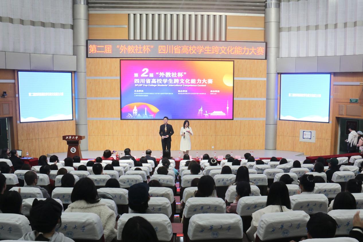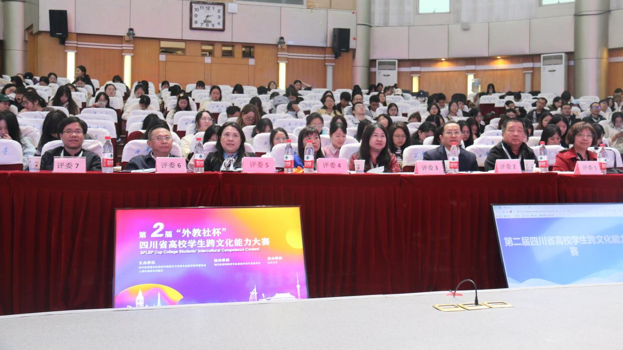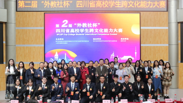 11月11日,第二届“外教社杯”四川省高校学生跨文化能力大赛决赛在tyc41183太阳成集团举行。本次比赛由四川省普通本科高校外国语言文学类专业教学指导委员会和上海外语教育出版社主办,四川高等教育学会高校外语专业委员会协办,tyc41183太阳成集团承办,旨在加强文明互鉴、推动中外交流,促进国际传播,来自四川的十所高校参赛队伍共同参与。