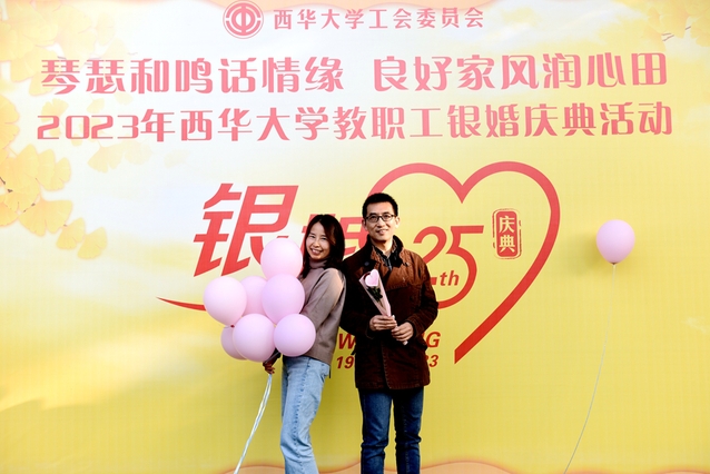 为深入贯彻落实习近平总书记关于家风建设的重要论述,纪念相濡以沫的25载芳华岁月,促进教职工事业家庭双丰收,1123日下午,校工会在梦桐泉举行2023年教职工银婚庆典活动,伉俪们欢聚一堂,共同庆祝这一美好时刻,校工会常务副主席王大清、副主席蓝进及校工会工作人员参加了此次活动,见证银婚夫妇们的甜蜜与幸福,活动由外国语学院教师罗雨虹主持。