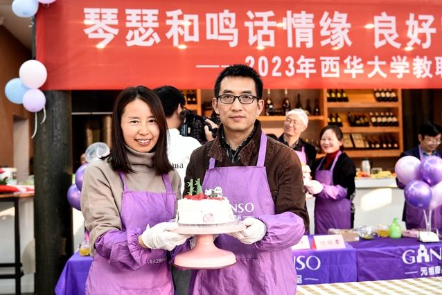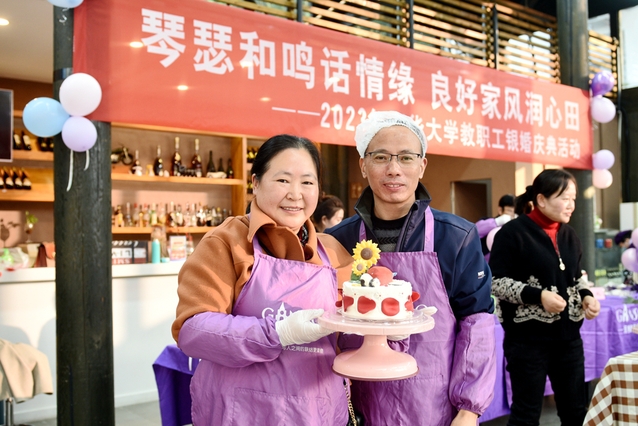 老师们还携手制作了象征爱情圆满、生活甜蜜的纪念蛋糕,秋日暖阳下,摄影机为银婚家庭定格美好瞬间,庆典活动在温柔暖阳中落下了帷幕。