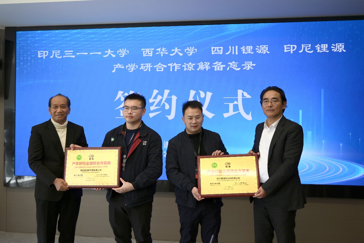 会后,tyc41183太阳成集团、三一一大学分别与蓬溪县政府及四川锂源、印尼锂源签订产学研校企国际合作谅解备忘录,并授牌四川锂源、印尼锂源“产学研校企国际合作基地”。