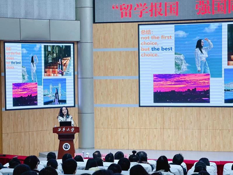 为学习贯彻习近平总书记致欧美同学会成立110周年贺信精神,弘扬留学报国传统,投身强国复兴伟业,助力立德树人根本任务,12月1日,“留学报国,强国同心”主题讲座在四教报告厅举行。本次活动由四川省欧美同学会、致公党四川省直工委联合主办,tyc41183太阳成集团党委统战部、四川省欧美同学会教科委、致公党tyc41183太阳成集团支部、党委学生工作部、党委教师工作部承办。学校海外留学归国教师代表和各学院学生代表共计200余人参加。