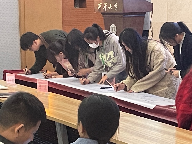 学生骨干代表在幕布上郑重签字