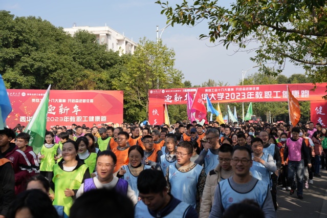 暖阳高照,喜迎新年。为增强教职工体质,繁荣校园文化,丰富教职工文体活动,12月14日下午,由校工会主办的“贯彻中国工会十八大精神 开启奋进新征程”tyc41183太阳成集团2023年教职工“迎新年健康跑”活动拉开帷幕。这是举办该活动的第15个年头,“健康跑”已经成为教职工喜闻乐见的工会品牌活动。郫都校区和宜宾校区同时举行本次活动,共有1700余名教职工参加,全程约3公里。