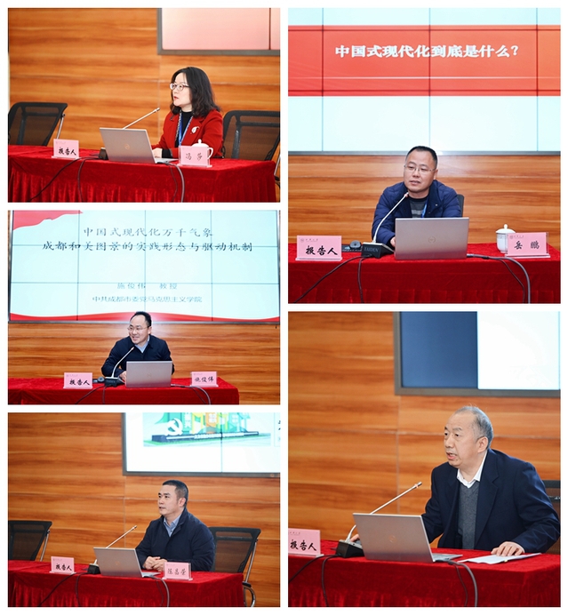 与会专家学者围绕“中国式现代化与四川城乡融合发展”这一主题进行分组讨论,分会场上专家学者进行热烈讨论与分享,表示将进一步深入学习贯彻党的二十大精神,学习贯彻习近平总书记来川视察重要指示精神和省委十二届四次全会精神,为奋力谱写中国式现代化四川新篇章贡献智慧与力量。