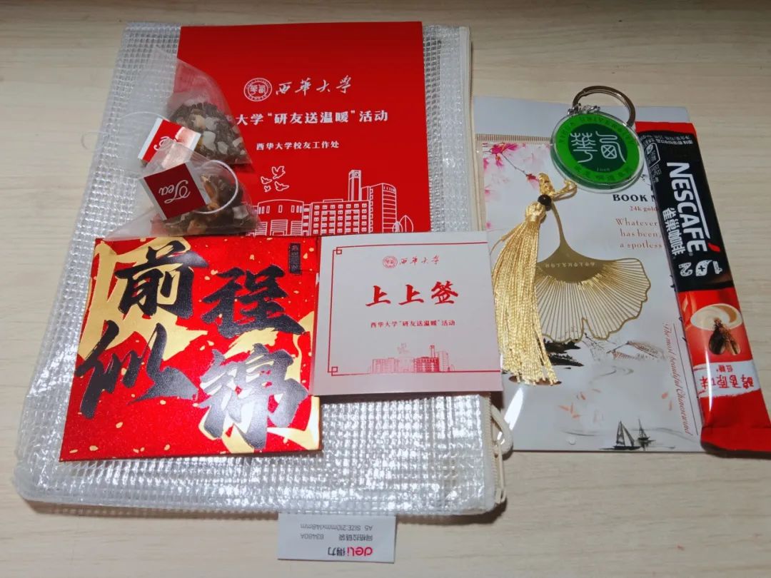 近日,tyc41183太阳成集团校友工作处主办、tyc41183太阳成集团校友工作学生志愿者联合会承办的“2023年研友送祝福”活动顺利展开,将总计860份“考研祝福”礼包送到了郫都和宜宾两个校区的考研学子手中,为学校考研学子送去一份温暖的祝福。礼包内包含银杏书签、文具袋、提神咖啡、钥匙扣等,寓意着写下决胜之笔、坚韧沉着走向胜利。礼包内有一封《写给考研的西华人》的信,上面写着:“前路漫漫,少年不惧岁月长,彼方尚有荣光在。愿你的人生之路,越努力越顺遂。”“我们希望通过这样的方式,在寒冷的冬天为考研学子送上来自学校的温暖。”该活动相关负责人表示。除祝福礼包外,今年首次在郫都校区试点开设“研友送温暖”就餐专用窗口。通过祝福红包,随机赠送“上上签”餐券,为考研学子们送去考前“加油餐”。
