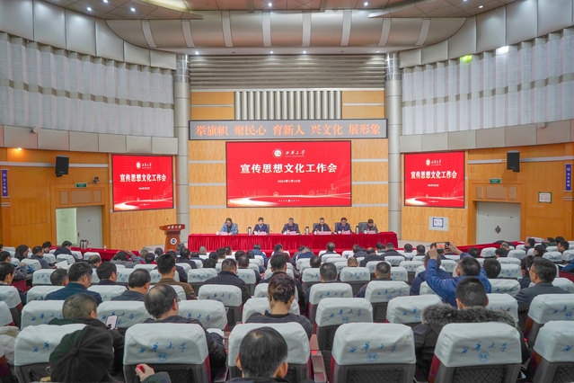 新形势、新任务,新气象、新作为。为深入学习领会习近平文化思想,全面落实全国、全省宣传思想文化工作会议精神,推进“时代新人铸魂工程”,1 月 12 日,学校在四教报告厅召开宣传思想文化工作会。会议紧扣立德树人根本任务,对当前和今后一个时期学校宣传思想文化工作进行部署,推进全校宣传思想文化工作高质量发展,为培养时代新人提供思想滋养、精神支撑和文化力量。会议分两个阶段进行,第一阶段为专家辅导报告和相关工作交流,由校党委副书记张力主持,第二阶段为大会工作报告,由校长李秋实主持。