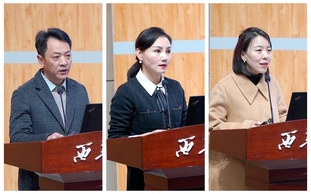 党委宣传部部长山述兰以“守学术相 散书卷气 启智润心 怡情铸魂”为题,汇报校园文化活动规划;党委学生工作部部长罗世韡以“‘西华易班’赋能学生工作提质增效”为题,汇报学生工作评价改革情况;马克思主义学院院长冯永泰以“突出实践导向 全面推进‘大思政课’建设”为题,对推进“大思政课”建设的西华实践作了汇报;学院党委书记代表、外国语学院党委书记唐润华以“保持政治定力 践行初心使命”为题,交流教师思想政治工作;学院系主任代表、音乐与舞蹈学院舞蹈系系主任曾焯以“立德树人 德艺双修 育新时代文艺接班人”为题,交流专业课教师教书育人工作;辅导员代表、电气与电子信息学院刘秀丽老师以“铸魂育人初心不改 精进本领育时代新人”为题,交流大学生思想政治教育工作。