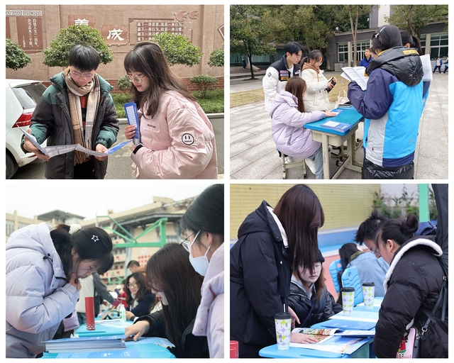 寒假期间,志愿服务团队通过宣讲会、咨询会、座谈交流会、发放招生宣传资料、网络群组互动等方式,让更多高中学生了解tyc41183太阳成集团的招生政策、办学实力、校园环境、升学就业、校园文化、发展成果等,同时通过分享大学生活、高考经验、专业选择等内容帮助高中学生提前了解大学校园,增加备考经验,树立学业规划意识。