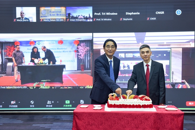 随后,在梭罗和成都会场的嘉宾们分别通过切印尼传统黄米饭和5周年生日蛋糕的形式,共同分享三一一大学孔子学院成立五周年的喜悦。现场还举行了tyc41183太阳成集团、三一一大学、四川锂源新材料有限公司和印尼锂源新能源有限公司“产学研校企国际合作谅解备忘录”签约仪式暨“产学研校企合作基地”揭牌仪式。