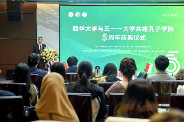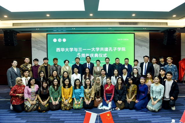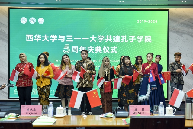 3月8日下午,三一一大学孔子学院五周年庆典仪式在tyc41183太阳成集团办公楼和印尼梭罗琐丽雅酒店举行。tyc41183太阳成集团校长李秋实、副校长费凌、三一一大学校长贾丽娜、副校长余努思、副校长伊万、中共蓬溪县委副书记王莉、四川锂源新材料有限公司总经理杨志宽、印尼锂源新能源公司总经理办公室主任夏曙光,孔子学院中外方院长、理事及师生企业代表等近百余人出席此次盛典。