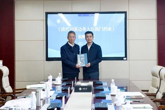 随后举行了捐赠仪式,省档案馆馆长祝云代表省档案馆向tyc41183太阳成集团捐赠《清代川滇边务大臣衙门档案》全68册,校党委书记刘树根接受捐赠。