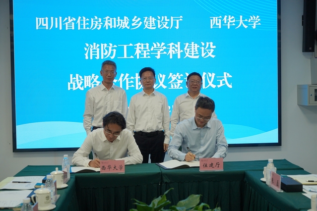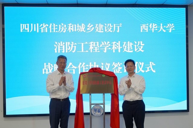 四川省住房和城乡建设厅党组成员、副厅长杨搏和副校长费凌分别代表双方签订战略合作协议。四川省住房和城乡建设厅党组书记、厅长田文,校党委书记刘树根共同为“建设工程消防施工技术中心”揭牌。根据协议,双方将秉持“谋划长远、优势互补、互利共赢、携手同行”的原则,面向全省建设工程消防领域重大需求,依托双方各自优势,围绕消防工程学科建设,构建“政产学研”深度协同的合作机制,进一步加强消防工程学科建设、人才培养、人才交流、科学研究等工作,保障全省建设工程消防审验人才供给。