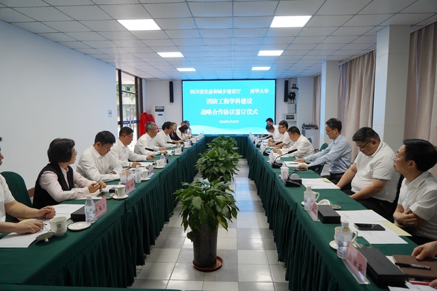 校党委书记刘树根致辞,向省住房和城乡建设厅领导一行表示欢迎,并向来宾简要介绍了学校的历史沿革、教学科研、学科建设等方面的基本情况。他表示,学校已经先期开展了消防工程专业人才培养和科学研究的探索,建立了涵盖本硕博的多层次人才培养体系。未来,将集合学校的优势资源,全力推进合作,把学科、人才和创新优势,与省住房和城乡建设厅的信息、技术、平台等优势有机结合、深度融合,进一步加强消防工程人才培养、科学研究、学科建设及社会服务工作,合力破解建设工程消防领域人才资源匮乏、技术支撑体系薄弱等问题,全面促进建设工程消防安全管理提质增效,为筑牢四川住建领域消防安全防线作出新的贡献。