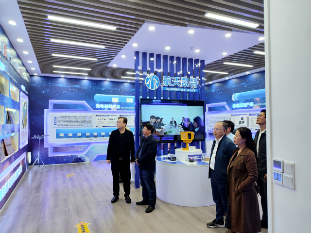 18日下午,在航天凯特董事长、98级应用电子专业校友蒋礼平的陪同下,刘小兵一行参观了航天凯特的产品展示区,听取了公司关于产品研发、生产工艺、市场应用等方面的介绍,对航天凯特在机电控制和光电探测领域具备的专业实力和创新能力给予了高度评价。