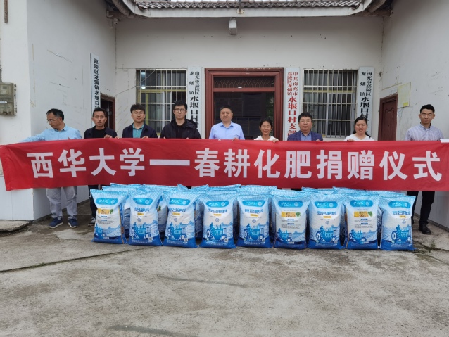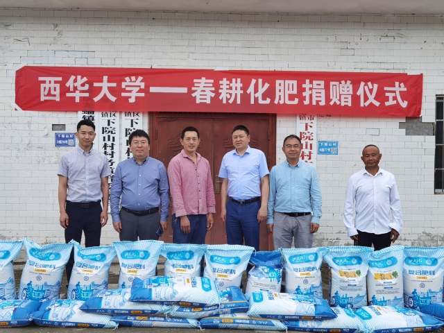 为有效解决水堰口村和下院山村集体种植肥料短缺问题,确保粮食稳产增收,4月24日,学校向对口帮扶的南充市嘉陵区龙蟠镇水堰口村和下院山村捐赠复合化肥3.6吨用于村集体种植,全面提升耕地质量和农业生产效率。