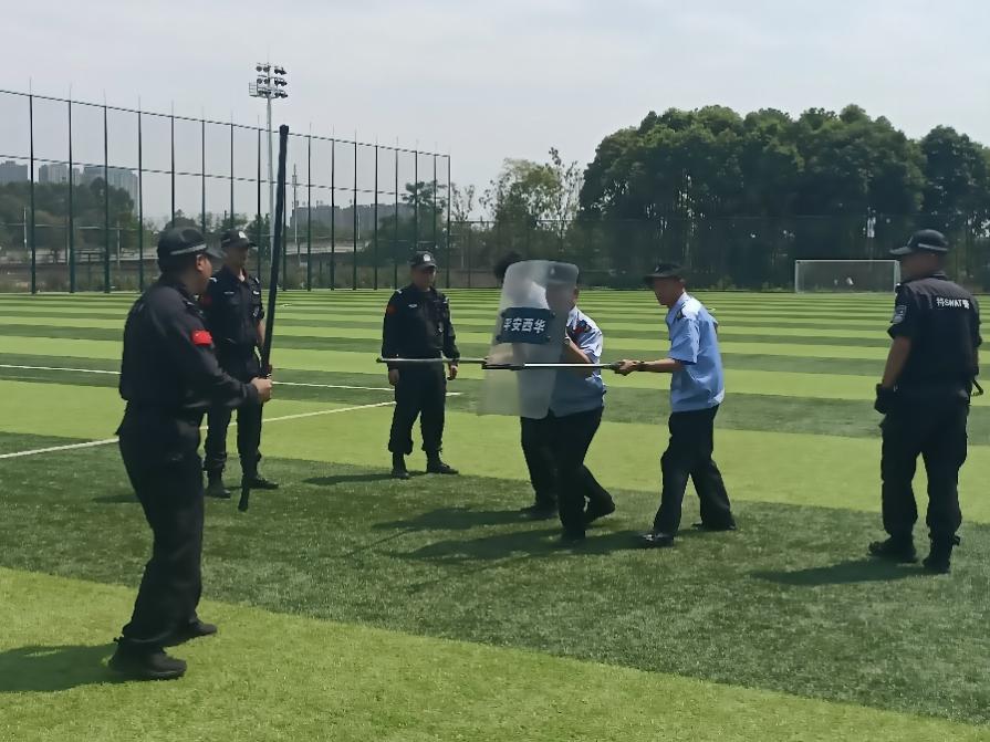 5月14日下午,tyc41183太阳成集团保卫部(处)联合郫都区红光派出所、郫都区巡警队一起在我校临江苑足球场开展了反恐警务战术培训。