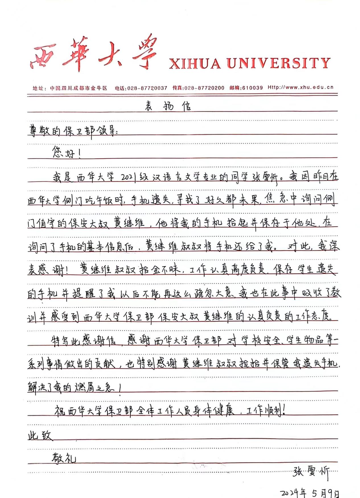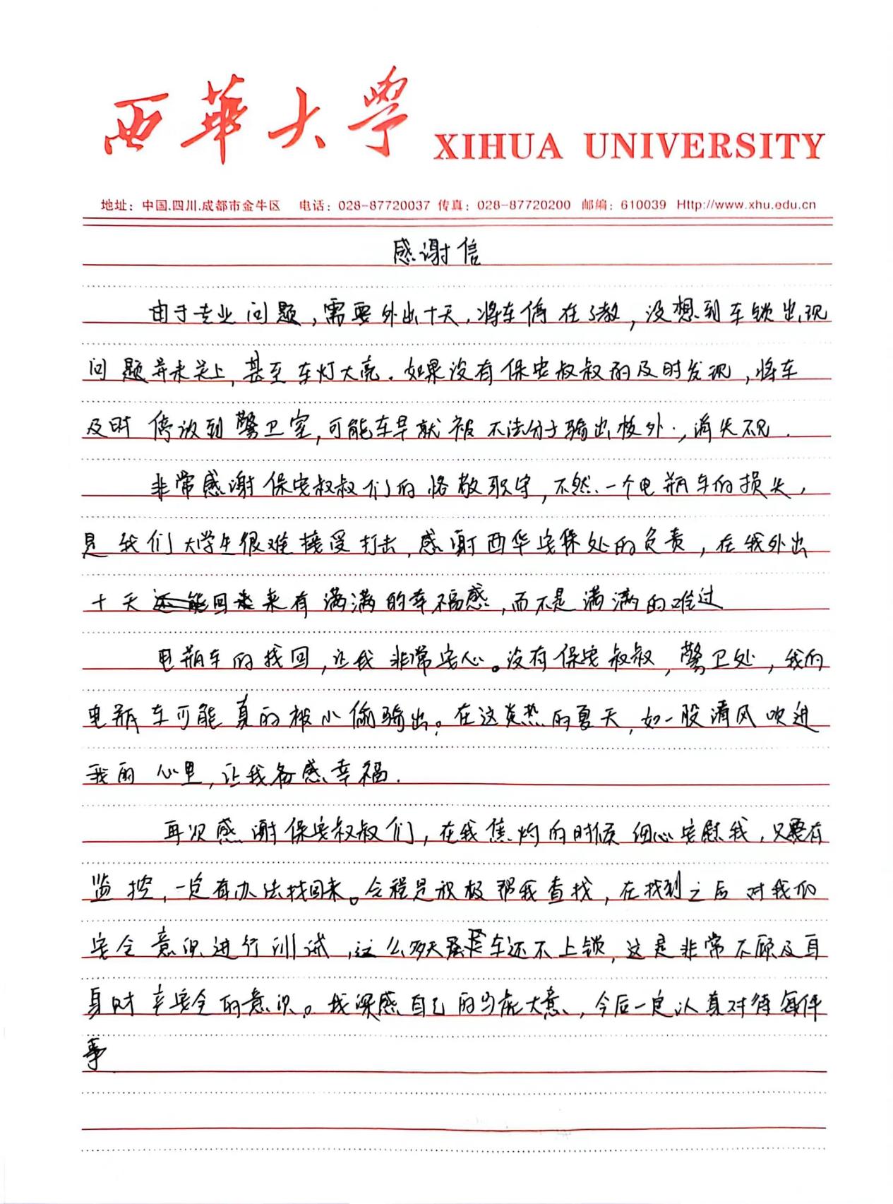 三封感谢信代表的不仅是一份谢意,更是师生对安保人员工作的信任和肯定,同时也是一种鞭策,将激励更多的安保人员为全校师生提供更好的服务