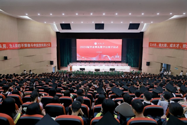 庄严而激昂的国歌声响起,2024届毕业生身着学位服,怀着对未来的憧憬与期待,共同迎来求学生涯中的难忘时刻。