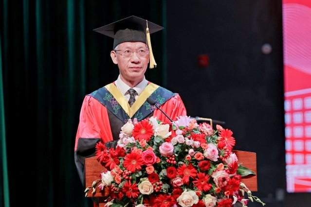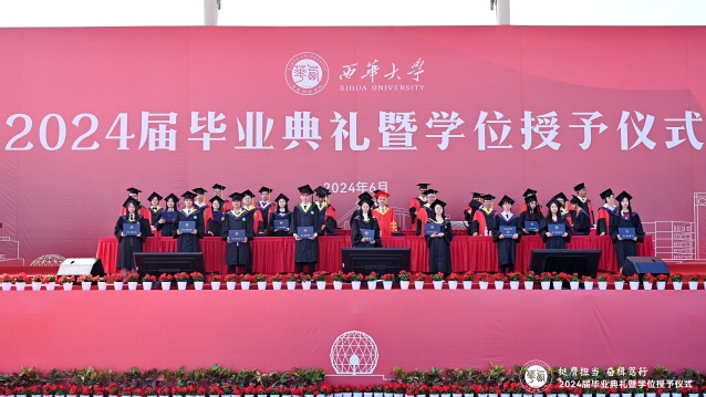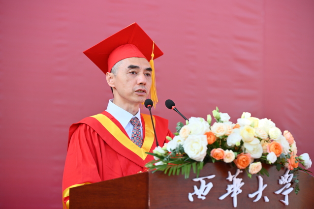 “今天之后,你们将从西华出发,走向人生的下一站。你们的肩上有清风明月,更有家国使命。”校党委书记刘树根指出,大家共同经历了做核酸、守绿码、云课堂等疫情大考,庆祝了党的百年华诞和校庆60周年,迎来了党的二十大和学校第二次党代会的胜利召开,感受了大运会火炬传递和比赛现场的心潮澎湃,广大学子共同参与和见证了学校与时代发展的重要事件。希望大家牢记母校的期望和嘱托,与青春共舞、与创新合体、与梦想同行,在担当中历练、在尽责中成长,真正成为奋进中国式现代化新征程的强国先锋、复兴栋梁,激扬青春豪情、创造精彩人生。