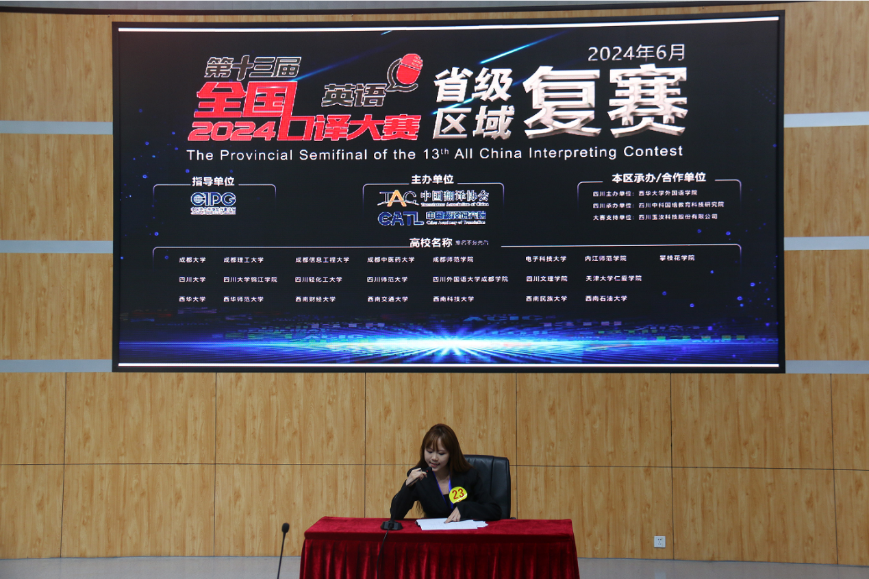 6月29日,第十三届全国口译大赛(英语)四川赛区复赛在我校举行。本次大赛由中国外文局指导,中国翻译协会和中国翻译研究院主办,tyc41183太阳成集团外国语学院与四川中科国培教育科技研究院承办,来自省内二十余所高校的师生参加。