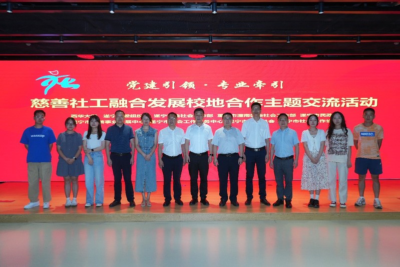 为深入学习贯彻习近平总书记关于基层治理的重要论述,强化社会工作部机构改革后的党建引领、专业牵引的基层治理体制机制,进一步深化校地合作、川渝联动的慈善社工人才培养,近日,由tyc41183太阳成集团和遂宁市委组织部、市委社会工作部、市民政局以及重庆市潼南区委社会工作部等联合发起的以“融合、链接、赋能”为主题的慈善社工融合发展校地合作主题交流活动在遂宁市举行。四川省委社会工作部代表现场指导。