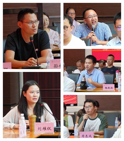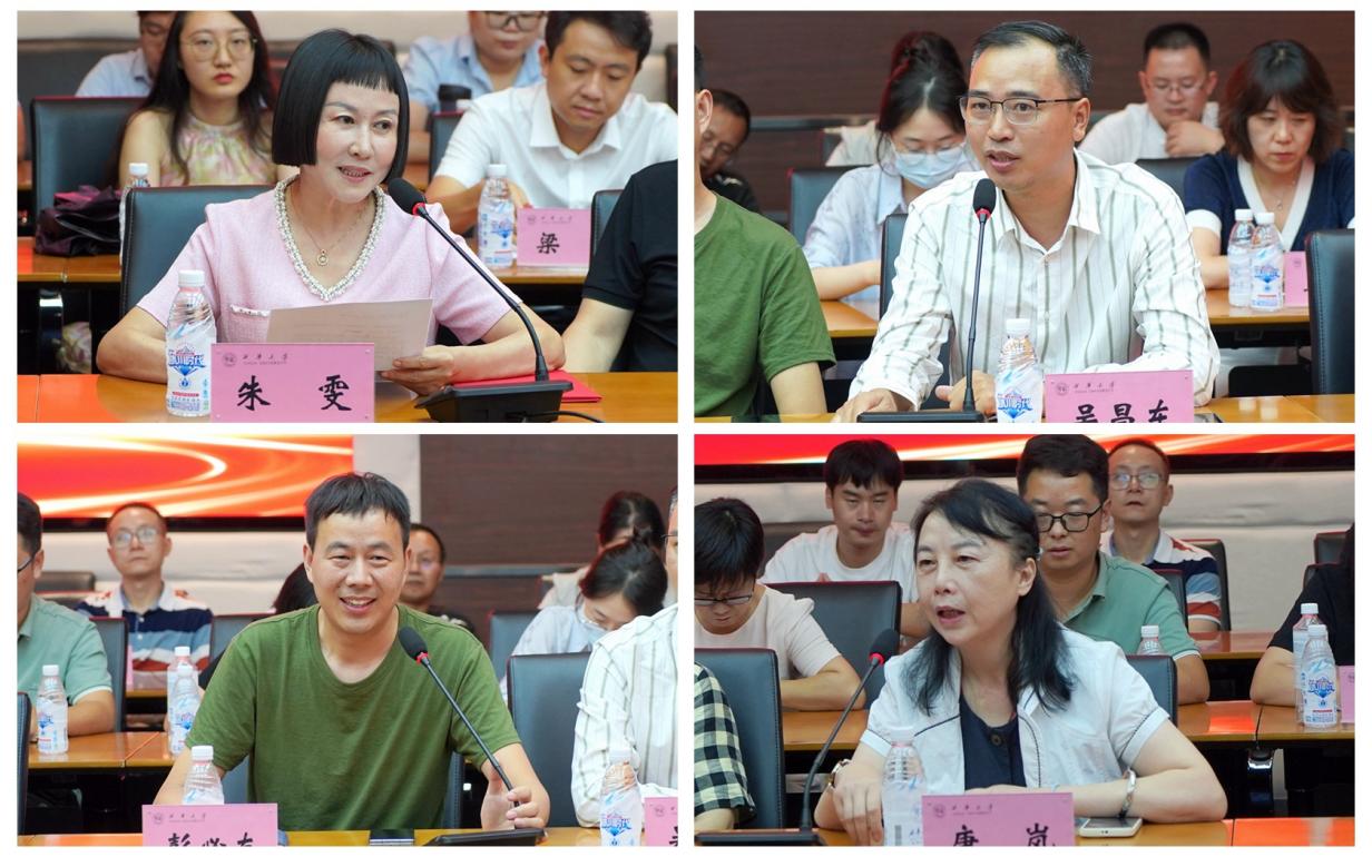 在交流座谈环节,与会教师畅谈教书育人感悟、潜心治学心得,并从学校实际现状、发展需求及教师期望等方面建言献策。电气与电子信息学院教师吴昌东表达了对学校的感激之情。他表示,朱雯老师等学校优秀老教师的教学理念、育人精神深深影响了他,而他会沿着荣休老师们优良传统不断创新,在教学上用心用情,为西华发展继续贡献力量。作为从西华毕业的学子,材料科学与工程学院教师彭必友向自己的恩师朱雯老师深情鞠躬。毕业留校的他很感谢学校的培养,希望学校能继续加强民生建设,为教师们教学科研提供更优质的条件,他坚定地表示:“希望所有西华教师拧成一股绳,团结一心,早日拿下博士点。我将和团队一起,为学校发展不遗余力贡献力量。”汽车与交通学院唐岚表示,近年来,学校的教学环境和民生工程发生了很大的变化,使得学校的教学质量更上新台阶,十分感谢学校对教师的关心。她呼吁所有老师克服困难,继续发挥“知难而进、自强不息”的西华精神,为申博目标奋斗,努力扎根结出更多更好的果实。随后,其他老师也纷纷结合自身教学科研工作,围绕教学科研、人才培养、学科建设等方面,畅谈教书育人心得体会,积极为学校发展建言献策。