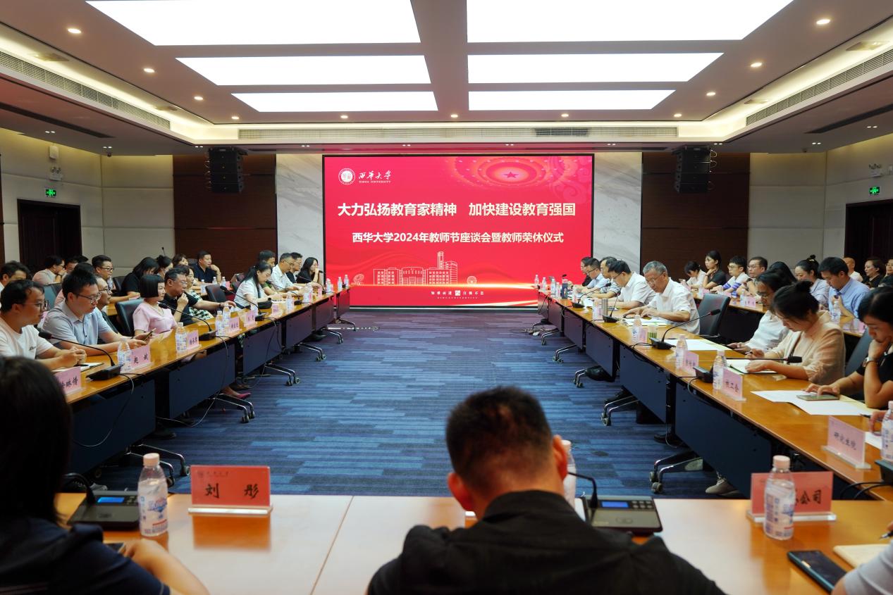 为深入贯彻党的二十大精神和习近平总书记关于教育的重要论述,大力弘扬教育家精神,加快建设教育强国,9月6日下午,学校在郫都校区办公楼101会议室举行庆祝第40个教师节教师座谈会暨2024年教师荣休仪式,向全体教师长期以来对学校发展所做的贡献表示感谢,倾听一线教师的心声,群策群力共谋学校发展。