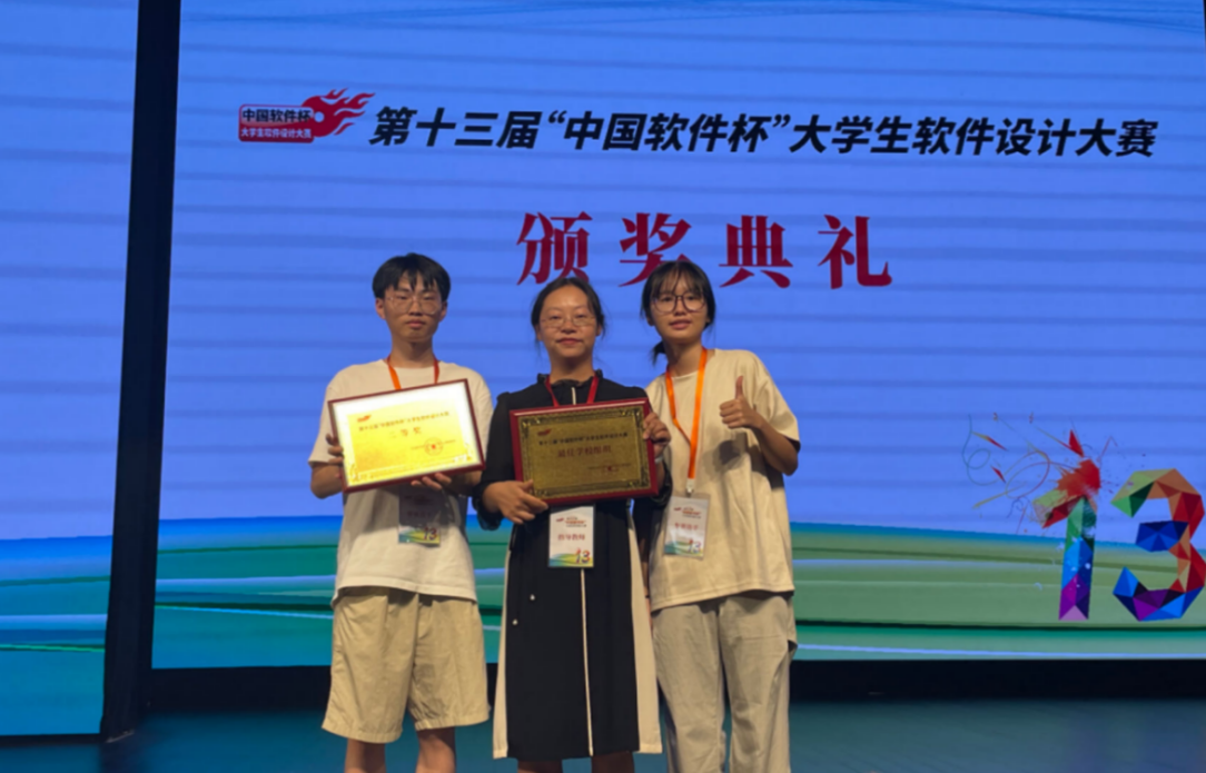 近日,第十三届“中国软件杯”大学生软件设计大赛全国总决赛在南京落下帷幕。经过初赛、总决赛现场程序演示和答辩环节的层层选拔,我校计算机与软件工程学院2021级本科生组建的“全都对”队伍(陈思、向富贵、王忠义)在指导教师吴越的带领下,获得全国总决赛二等奖。