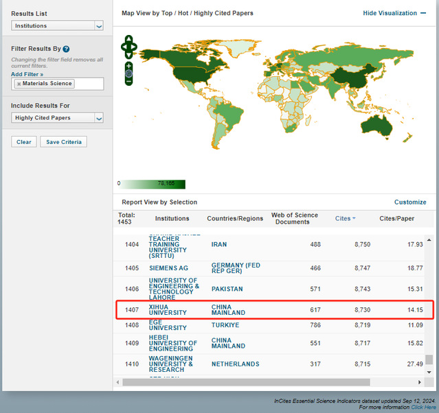 9月12日,科睿唯安基本科学指标数据库ESI公布的最新数据显示,我校材料科学(MATERIALS SCIENCE)学科首次进入ESI全球排名前1%,标志着我校材料科学学科迈入了国际高水平行列。这是我校继工程学学科进入ESI全球排名前1%之后,学科发展的又一突破。