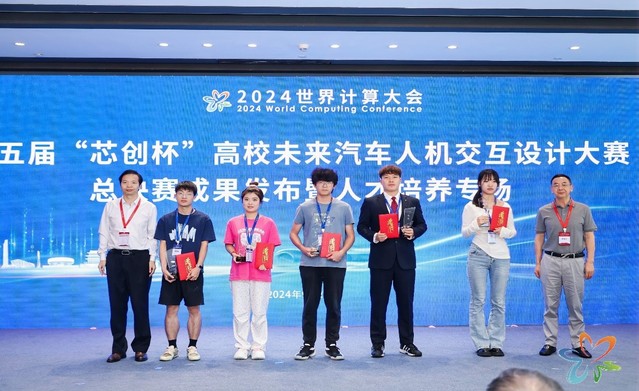 在2024世界计算大会专题展中,我校第四届“芯创杯”参赛团队智行工场的获奖项目“新一代汽车人机交互系统”被作为优秀成果展出,并被世界计算大会授予“2024世界计算大会专题展优秀成果”。