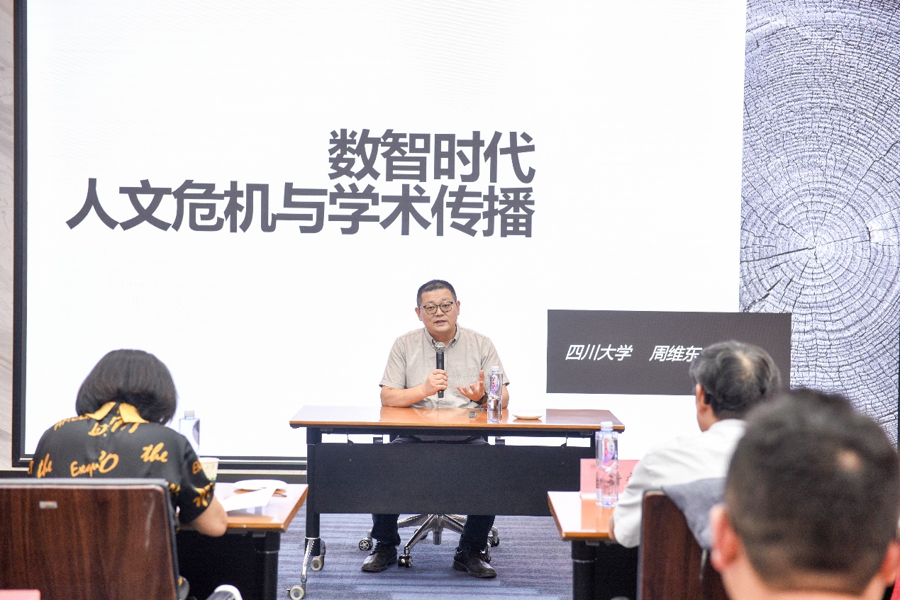四川大学周维东教授讨论了数智时代带来的人文危机,包括人类合成化、感觉数据化和生活虚拟化,并探讨了大模型对学术生态和学术传播的影响。