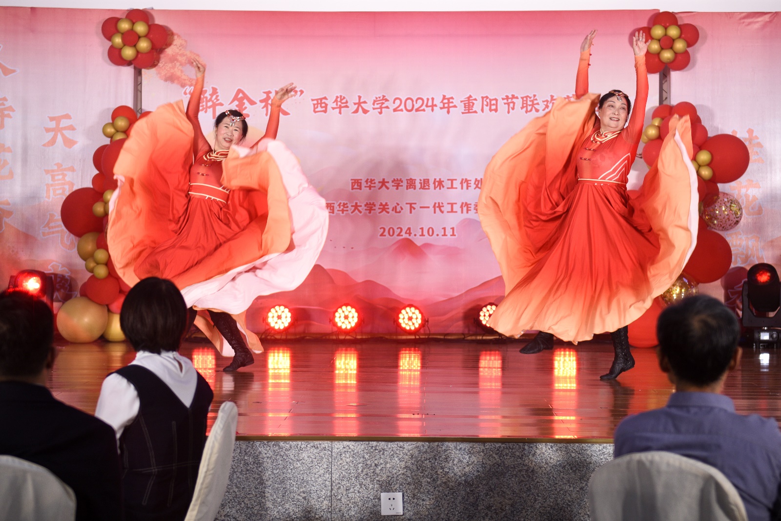 在随后的文艺表演环节,14个精彩纷呈的节目接连登场,形式多样、内容丰富多彩,每个节目都赢得了现场观众的热烈掌声和欢呼。在配乐诗朗诵《念奴娇·赤壁怀古》《沁园春·雪》节目中,伴随着慷慨激昂的背景音乐,这两首气势恢宏的经典作品在朗诵者深情而有力的诵读中,仿佛重新焕发了生命力,饱含对历史的沉思与对祖国大好河山的热爱。蒙古舞《心愿》充满活力,动作优雅流畅,每一个旋转与跳跃都展示着对美好生活的热爱和对心中愿望的坚定追求。在京剧《霸王别姬》节目中,表演者展现了京剧文化的独特魅力,动作行云流水,唱腔铿锵有力,气韵十足,将项羽与虞姬离别的悲壮情感演绎得淋漓尽致。独唱《我的太阳》令人印象深刻,老同志以其独特的嗓音和深厚的音乐素养,完美演绎了这首经典歌曲,歌声如同温暖的阳光,洒在每一个人的心田。在藏舞《蓝色天梦》节目中,舞者们身着色彩斑斓的藏族服饰,宛如一朵朵盛开的花朵,优美的舞姿展现了藏族文化的独特韵味,仿佛将观众带入了辽阔的草原与蔚蓝的天空之中。在扑克牌魔术表演中,表演者展示了高超的手法技巧,当他神奇地从牌堆中找出指定的牌时,全场观众惊叹不已,不禁鼓掌叫好。他借此提醒大家,扑克牌可以用来表演魔术,但千万不要用来赌博,应保持健康积极的生活方式。新疆舞《苹果香》仿佛将观众带入了广袤的新疆大地,舞蹈中那轻盈的舞步,似乎在诉说着她们青春岁月中的点滴回忆;而那欢快的节奏,表达了对未来美好生活的期待与向往。吟诵《爱莲说》字里行间透出对莲花的热爱和对高洁品格的赞美,台下观众无不屏息凝神,陶醉于那优美的韵律与深邃的意境之中,感受莲花所象征的坚定信念与优雅气质。萨克斯二重奏《梁祝》表演配合默契,音符仿佛在空气中轻舞,流淌出深情的旋律,完美地诠释了梁山伯与祝英台之间的凄美爱情,让人沉醉其中。新疆舞《柯尔克孜姑娘》展现了柯尔克孜族姑娘的青春活力与灵动神韵,舞步时而婀娜多姿,时而充满力量,充满了艺术感染力,舞蹈洋溢出的青春气息令人叹为观止。益智游戏《看看谁的反应快》为活动增添了无限乐趣,参加表演的老同志们虽然年事已高,但反应速度丝毫不逊色于年轻人,充分展现出他们敏捷的思维能力和良好的健康状态。电吹管演奏《挡不住的思念》表达了对往昔岁月的深情怀念,演奏者技艺娴熟,深情婉转的乐声勾起了在场所有人对美好岁月的无限追忆,不少观众沉浸其中,动情地轻声跟随旋律哼唱。女生小合唱《回娘家》生动描绘了回家探亲的温馨情景,她们的声音清脆悦耳,婉转动人,通过默契的配合与细腻的情感表达,使在场观众感受到了那份浓厚的亲情。浙江民泰商业银行郫都支行的工作人员带来了精心准备的情景剧《小心有诈》,通过生动的表演和贴近生活的情节,再现了现实中常见的诈骗手段,让老同志对防诈骗知识有了更深刻的理解和认识,提高了大家对诈骗的警觉性。
