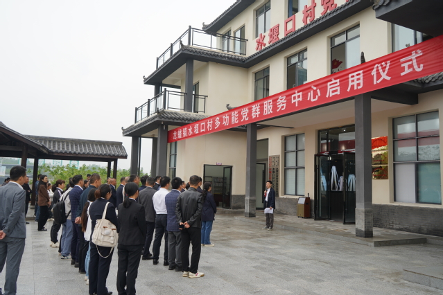 随后,李秋实一行参加了水堰口村党群服务中心启动仪式,该党群服务中心由学校捐资50万元,联合顺成纺织品有限公司和嘉陵区人民医院修建完工。在驻水堰口村第一书记刁成豆和顺成纺织品有限公司总经理王尚雪的引导下,李秋实一行参观了党群服务中心一楼展示大厅,观看了水堰口村驻村工作总结视频,了解顺成公司的发展规划和丝绸产品销售情况。