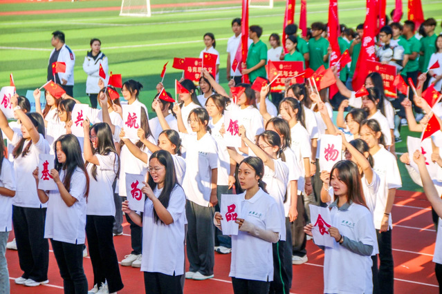 伴随着《运动员进行曲》的高昂旋律,各方队带着饱满的精神、蓬勃的朝气,迈着整齐划一的步伐走向主席台。眼神坚定,满是青春能量;口号嘹亮,尽展西华风貌。