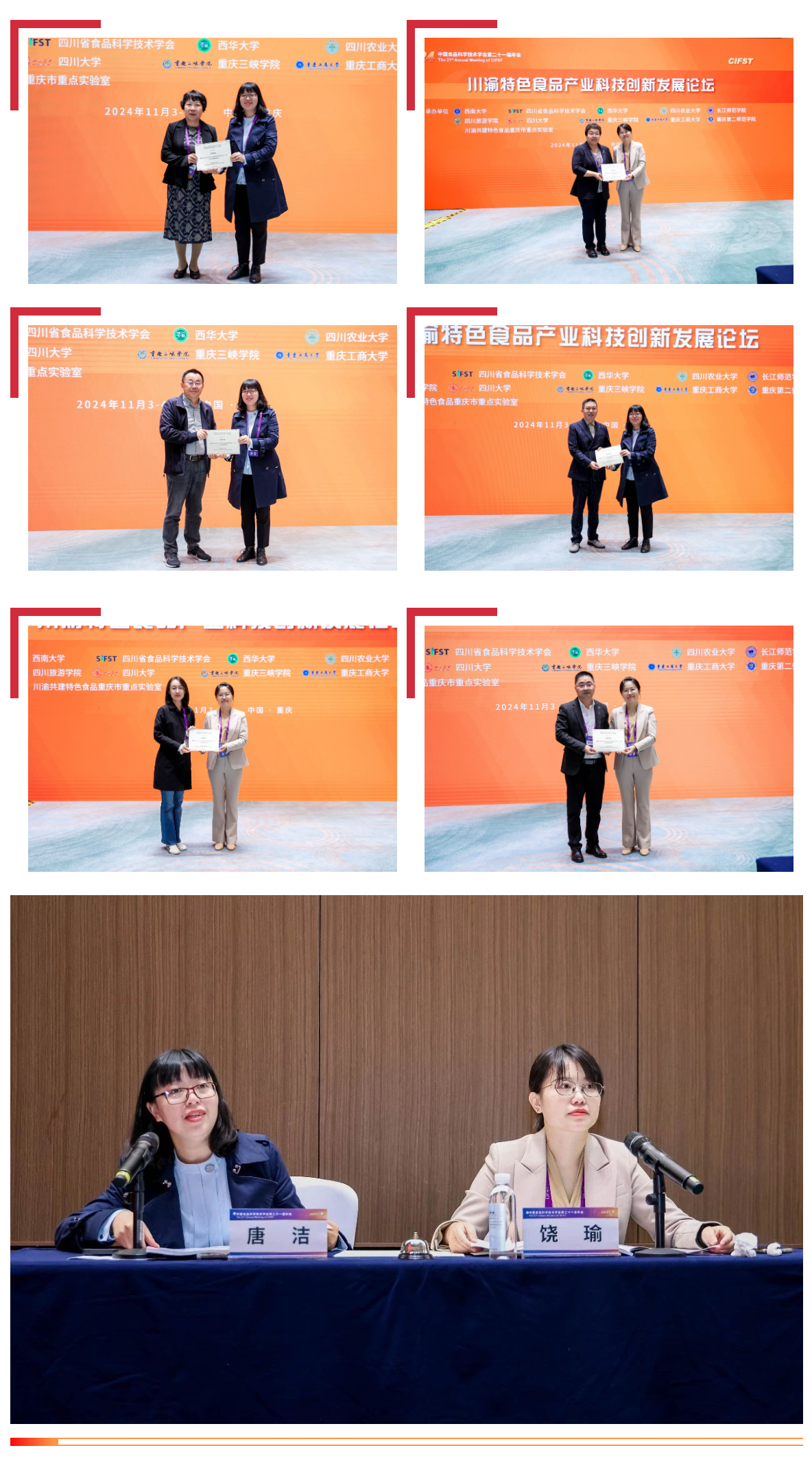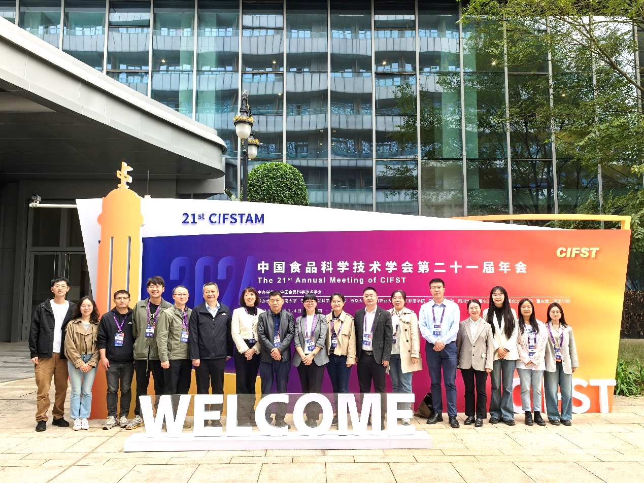 此次大会以40余场活动,逾300位专家学者的大会发言和专题报告,800余篇论文摘要,300余篇张贴海报,多维度探讨前沿科技,分享科技成果,全面展示新时代中国食品科技的高水平、新风采。我校食品与生物工程学院承办了川渝特色食品产业科技创新发展论坛III“川渝特色食品现代制造与智能化分论坛”。论坛由院长唐洁、副院长饶瑜共同主持,邀请浙江大学生物系统工程与食品科学学院副院长刘东红教授、大连工业大学食品交叉科学研究院副院长董秀萍教授、四川大学轻工科学与工程学院许正宏教授、成都海科机械设备制造有限公司郑友林董事长、四川大学轻工科学与工程学院刘振宇特聘副研究员、我校食品与生物工程学院副院长林洪斌作学术报告。各位专家学者结合川渝特色分享了自己的科研成果,获得广泛的关注。此外,陈祥贵教授、黄玉坤副教授受会议方邀请,分别作了特邀报告,研究生刘琳同学在会议中作了分论坛报告。