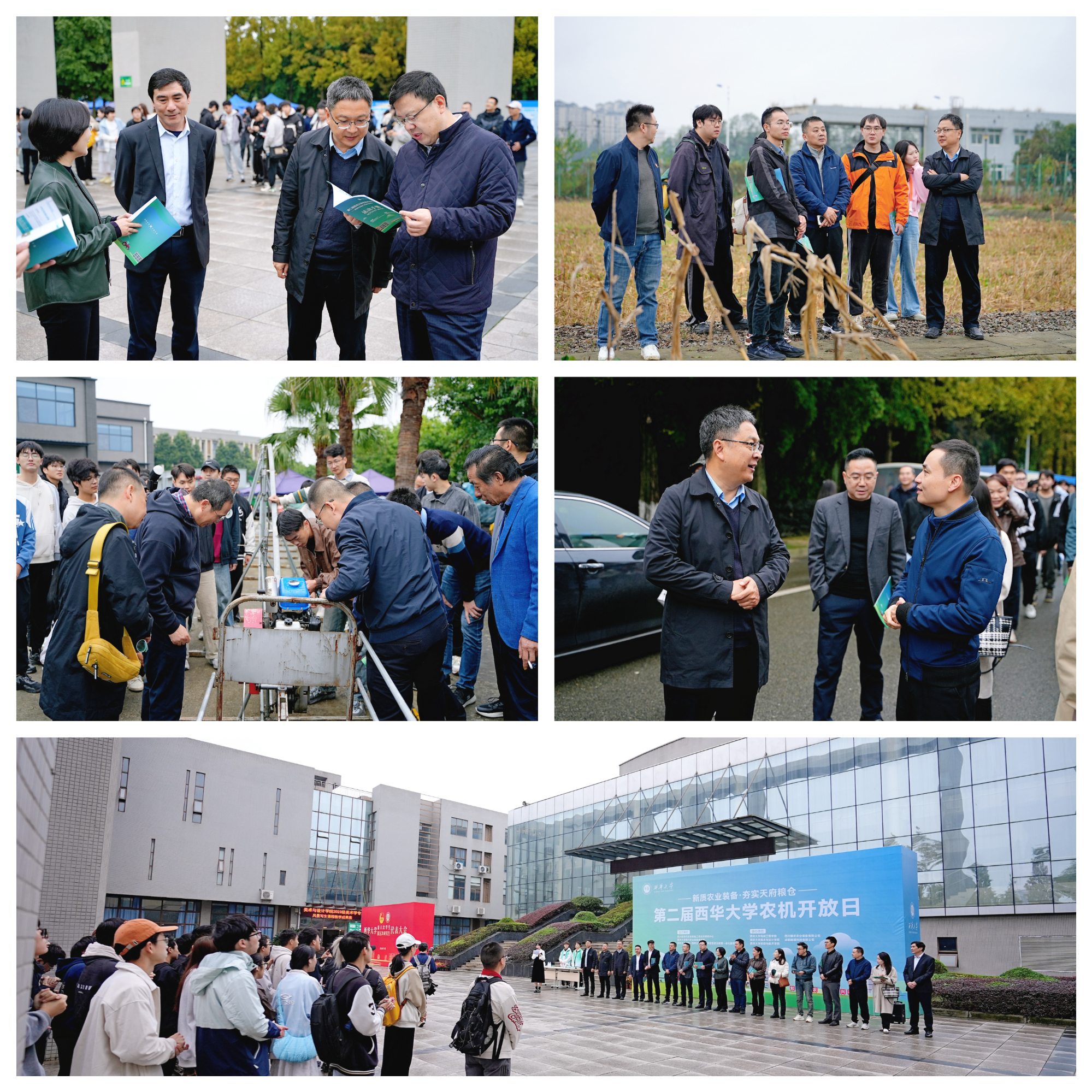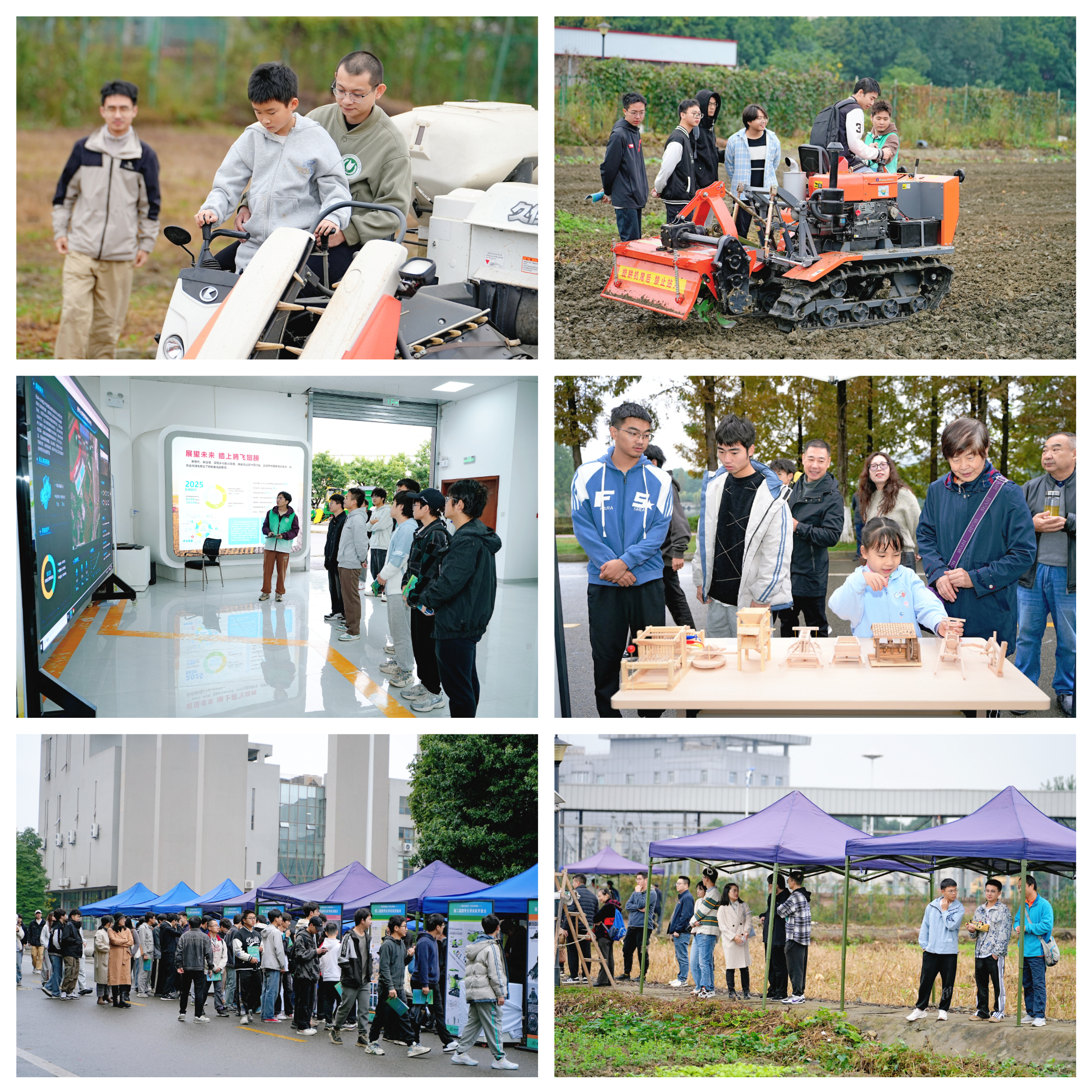 秋风送爽,金色田野与天籁湖见证了一场农机科普盛会。11月10日,第二届tyc41183太阳成集团农机开放日在tyc41183太阳成集团校内成功举办。本次活动以“新质农业装备,夯实天府粮仓”为主题,由四川省现代农业装备工程技术研究中心、tyc41183太阳成集团现代农业装备研究院、农机文化之旅——tyc41183太阳成集团大中小学思想政治教育一体化教育基地主办,tyc41183太阳成集团机械工程学院、美术与设计学院、航空航天学院,四川耀农农业装备有限公司、成都越疆科技有限公司协办。活动涵盖了农机工业设计作品展示、古代农具与现代农业装备模型展示、低空飞行农业场景展示、学科竞赛优秀作品展示、现代农业装备研究院科研成果展示以及大田作业演示、互动体验等内容。第二届tyc41183太阳成集团农机开放日相较于首届开放日,展出作品数量更多,参与范围更广,形式更灵活多样,互动体验感更强,吸引了校内师生和社会各界人士超过500人参与。
